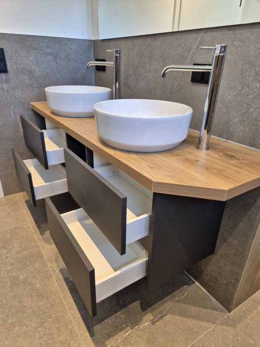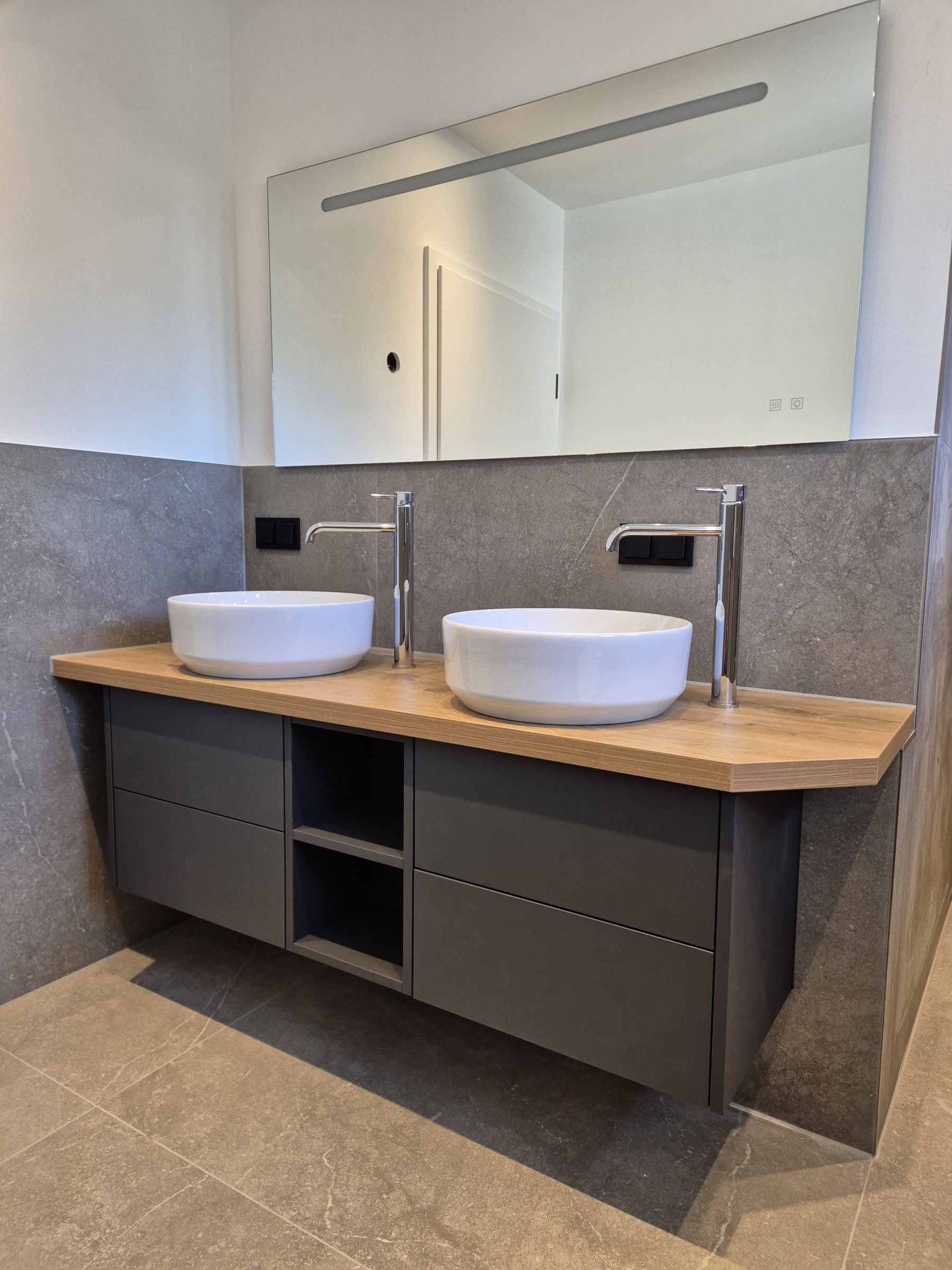 Um Ihnen ein Badezimmererlebnis zu bieten, das sowohl entspannend als auch stilvoll ist, werden unsere Badmöbel genau nach Ihren persönlichen Wünschen und Anforderungen gefertigt. Wählen Sie aus einer Vielzahl von Stilen, Farben und Oberflächen, um ein maßgeschneidertes Design zu schaffen, das perfekt zu Ihrem Badezimmer passt.